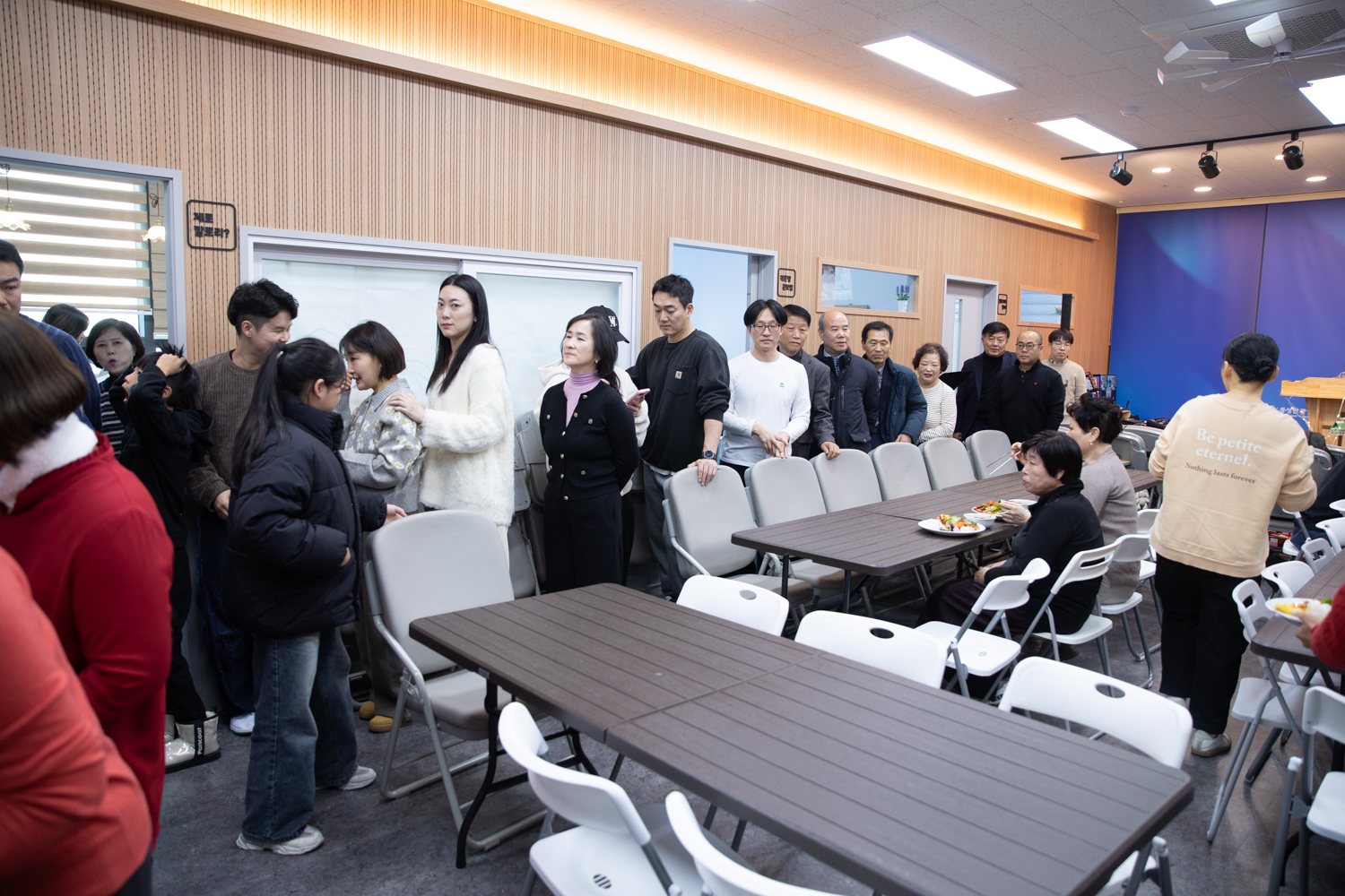 오늘은 주일이자, 풍성한광염교회의 2주년을 감사하는 날입니다. 오늘 점심은 성도들이 각자 한 가지씩 음식을 해 준비했습니다. 또 교회는 2주년을 맞이하도록 힘쓰고 애쓴 성도들을 위해 선물을 준비했습니다.