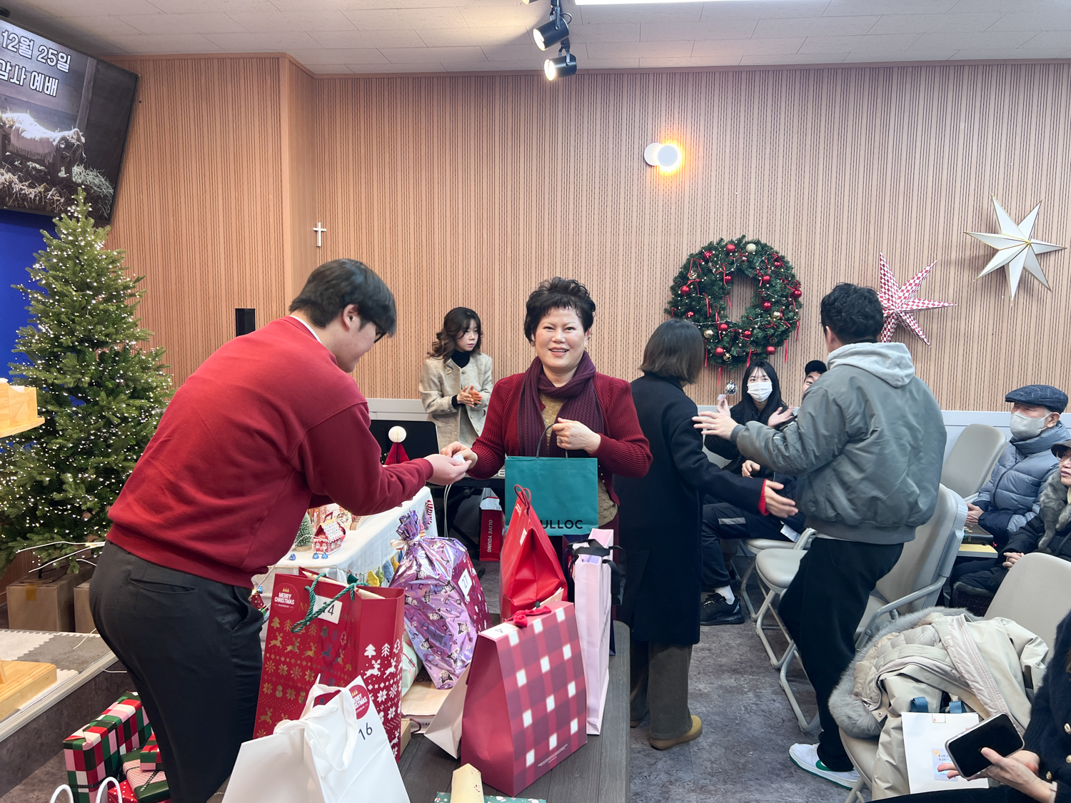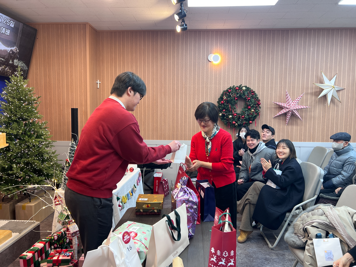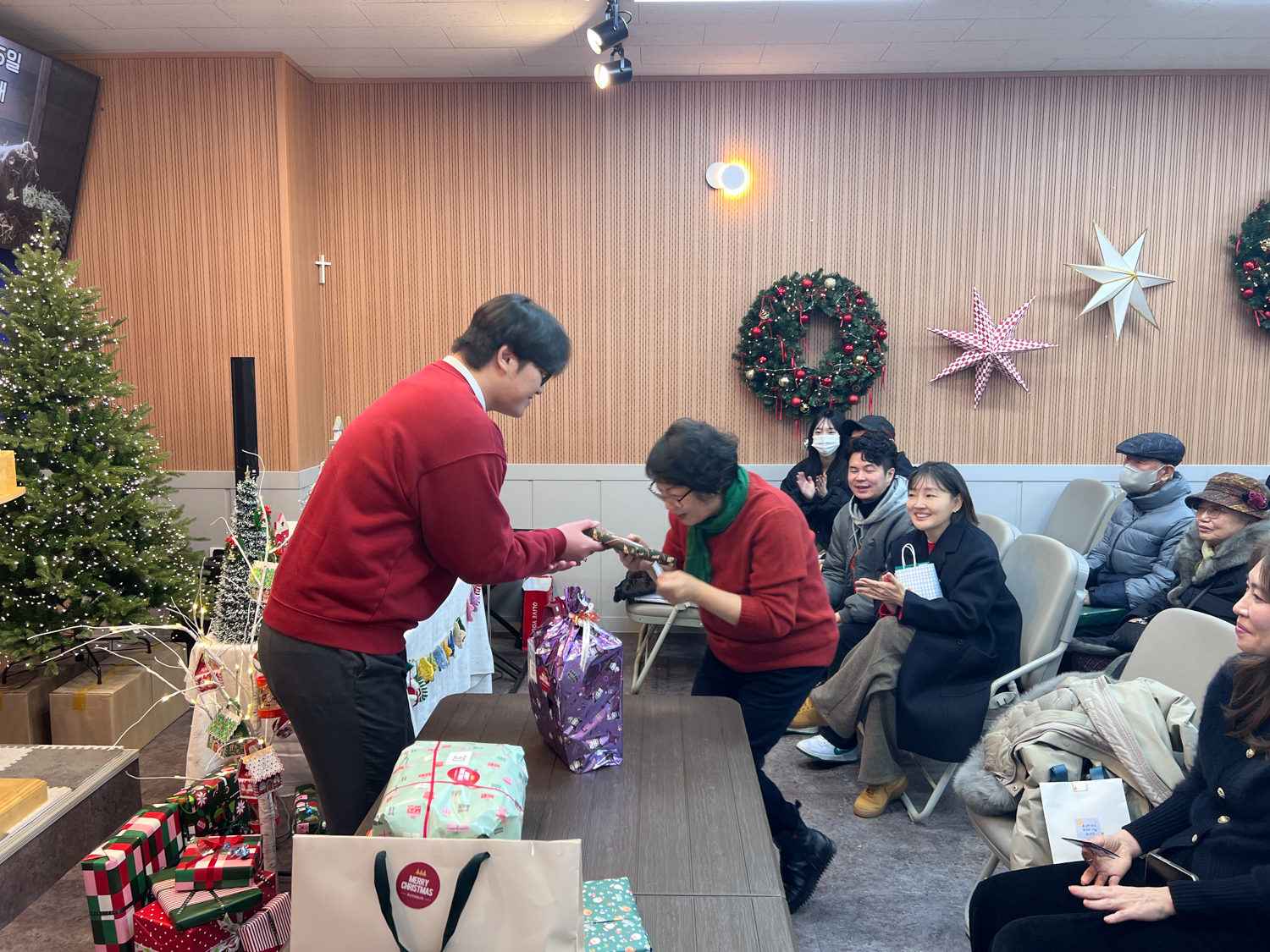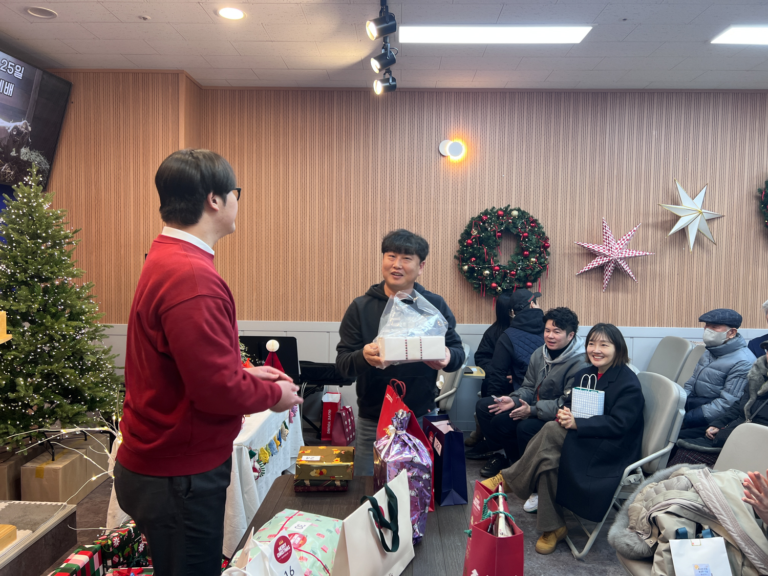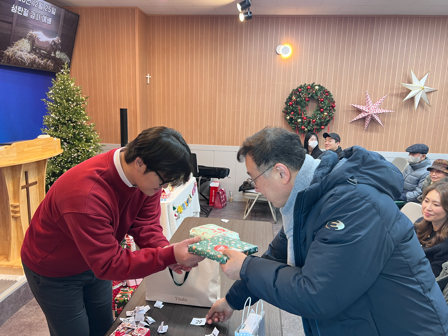 2025년 성탄절입니다. 예수님이 이 땅에 오신 것을 기념하는 날입니다 .오늘은 성탄절을 맞이해서 남,여 성도회가 특송을 준비했습니다. 또 주일학교 김재희군의 멋진 찬양과 랩 그리고 율동도 볼 수 있었습니다. 예배가 모두 끝난 뒤에는 선물도 나누었습니다.