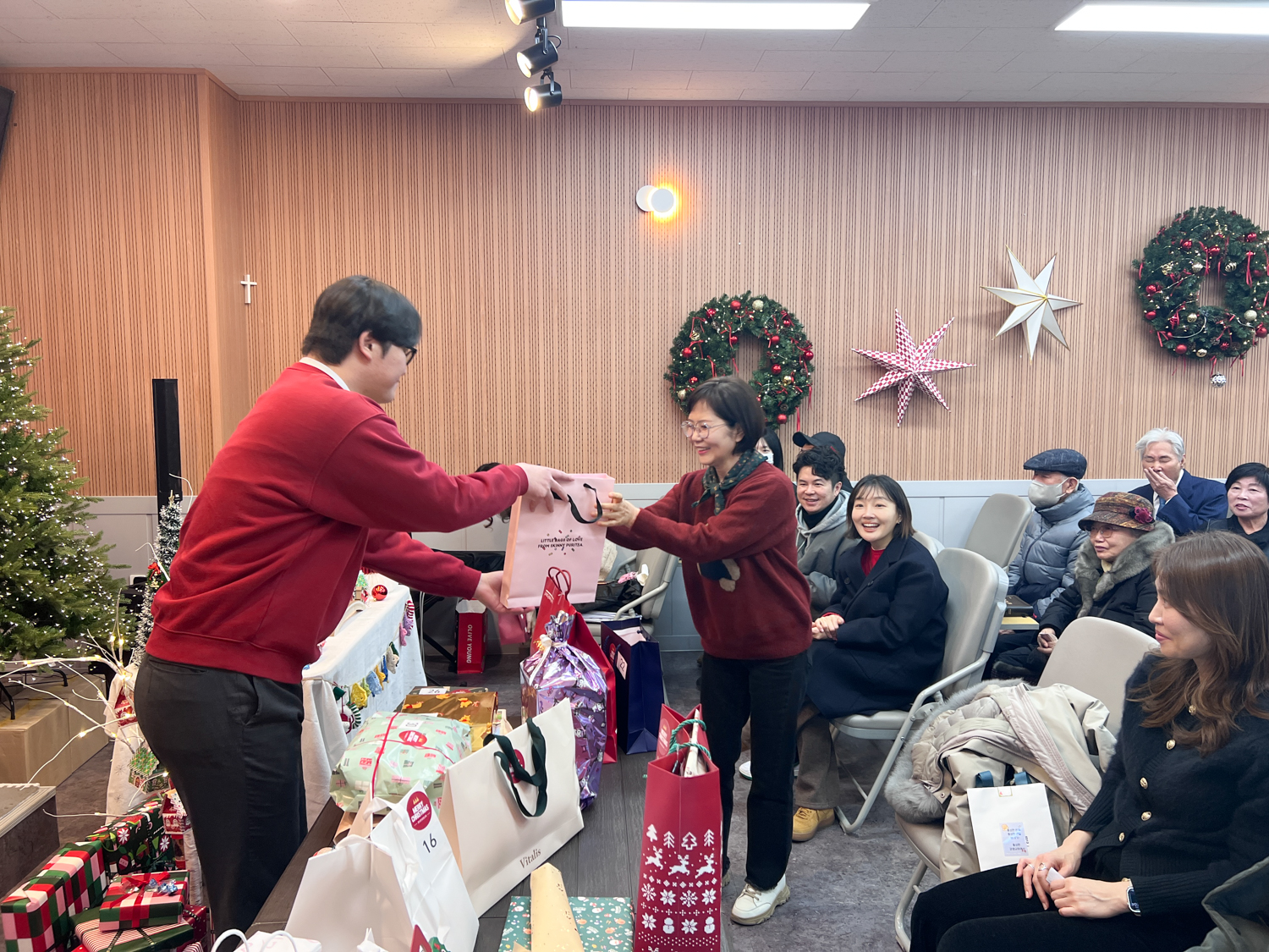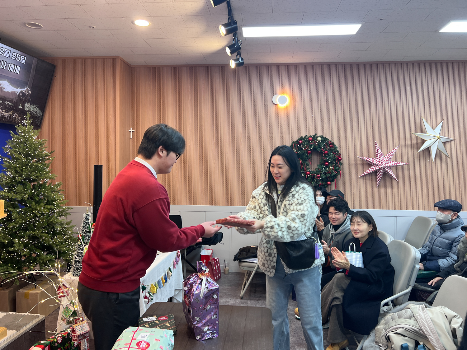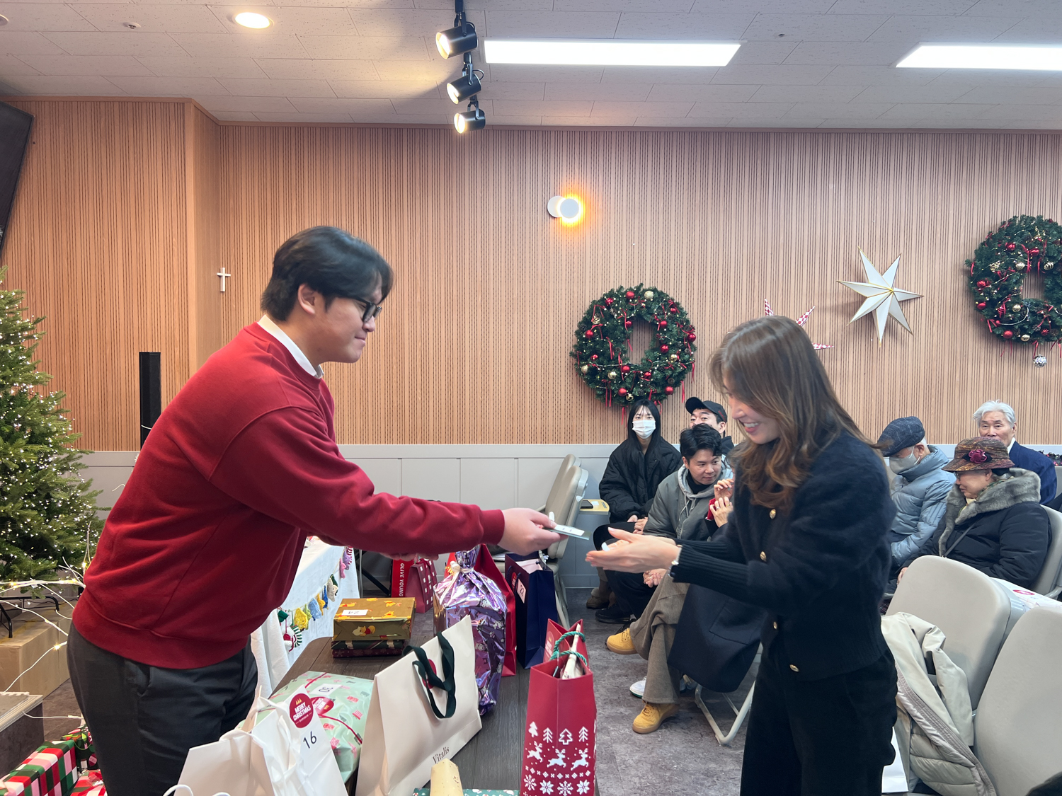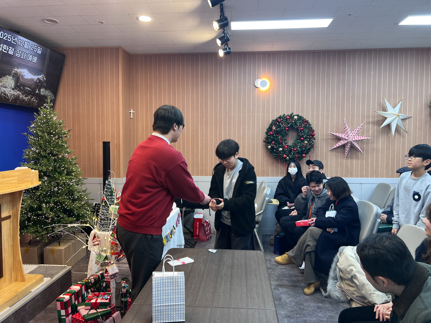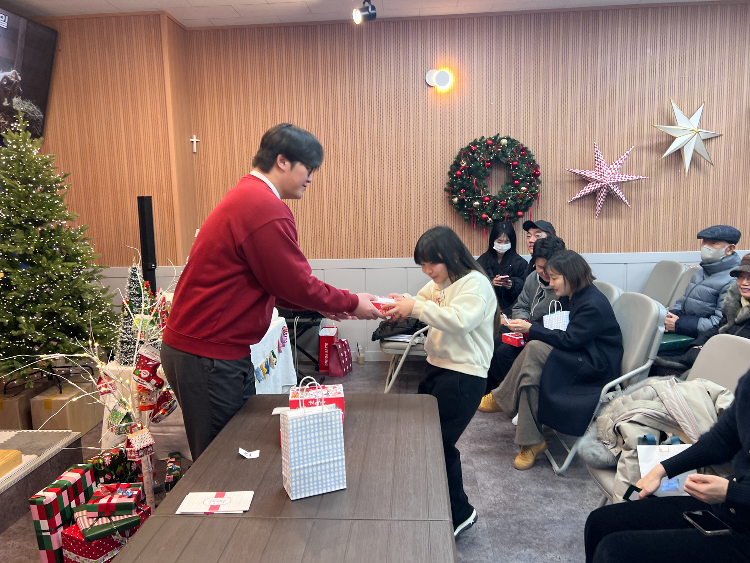 2025년 성탄절입니다. 예수님이 이 땅에 오신 것을 기념하는 날입니다 .오늘은 성탄절을 맞이해서 남,여 성도회가 특송을 준비했습니다. 또 주일학교 김재희군의 멋진 찬양과 랩 그리고 율동도 볼 수 있었습니다. 예배가 모두 끝난 뒤에는 선물도 나누었습니다.