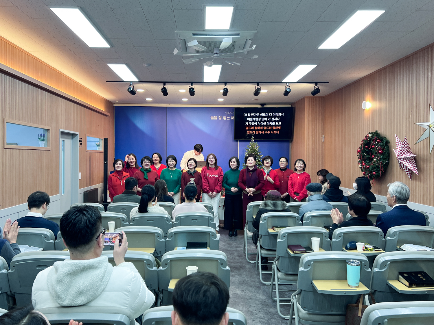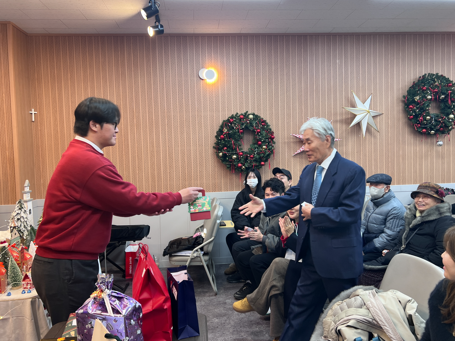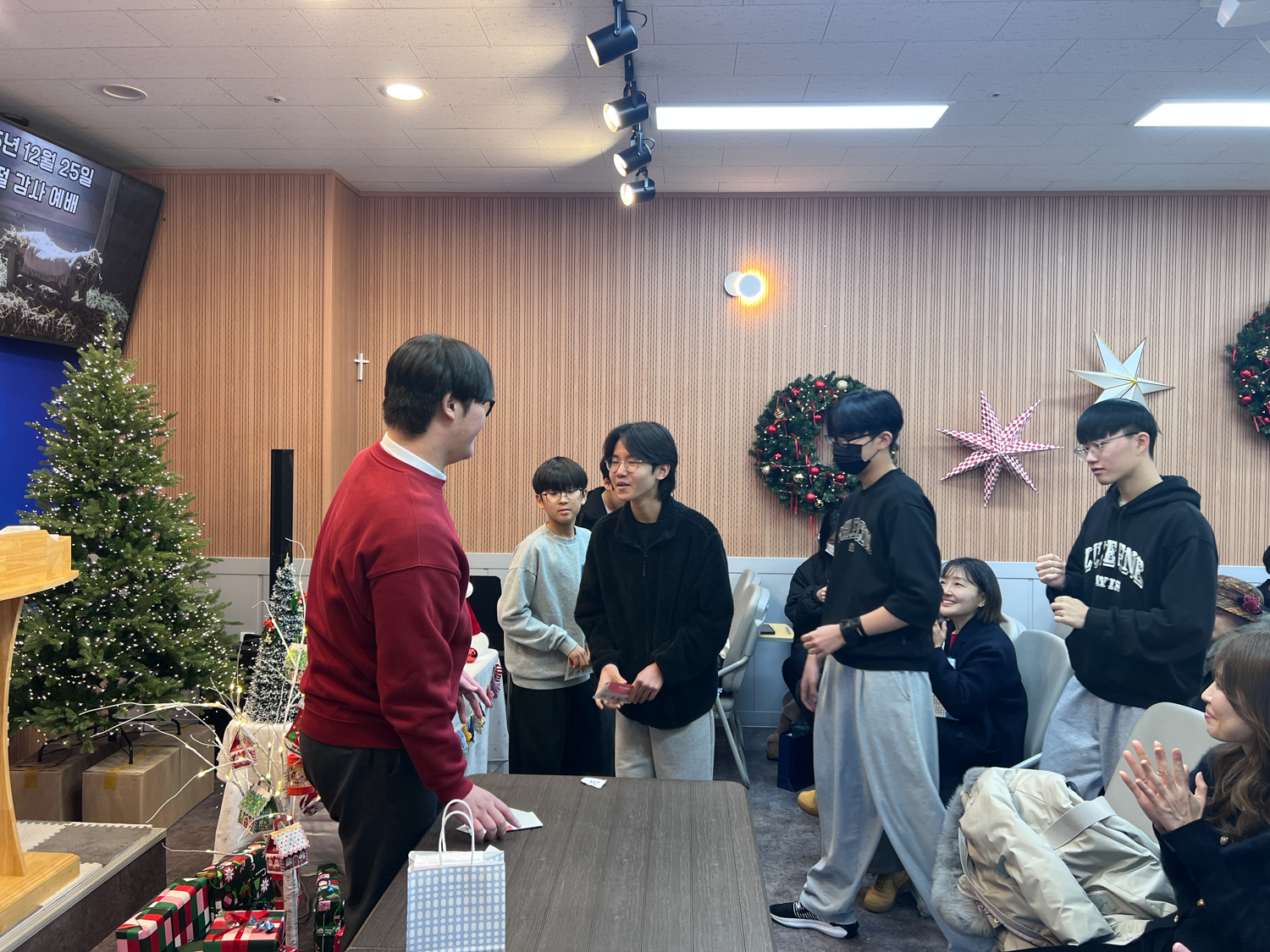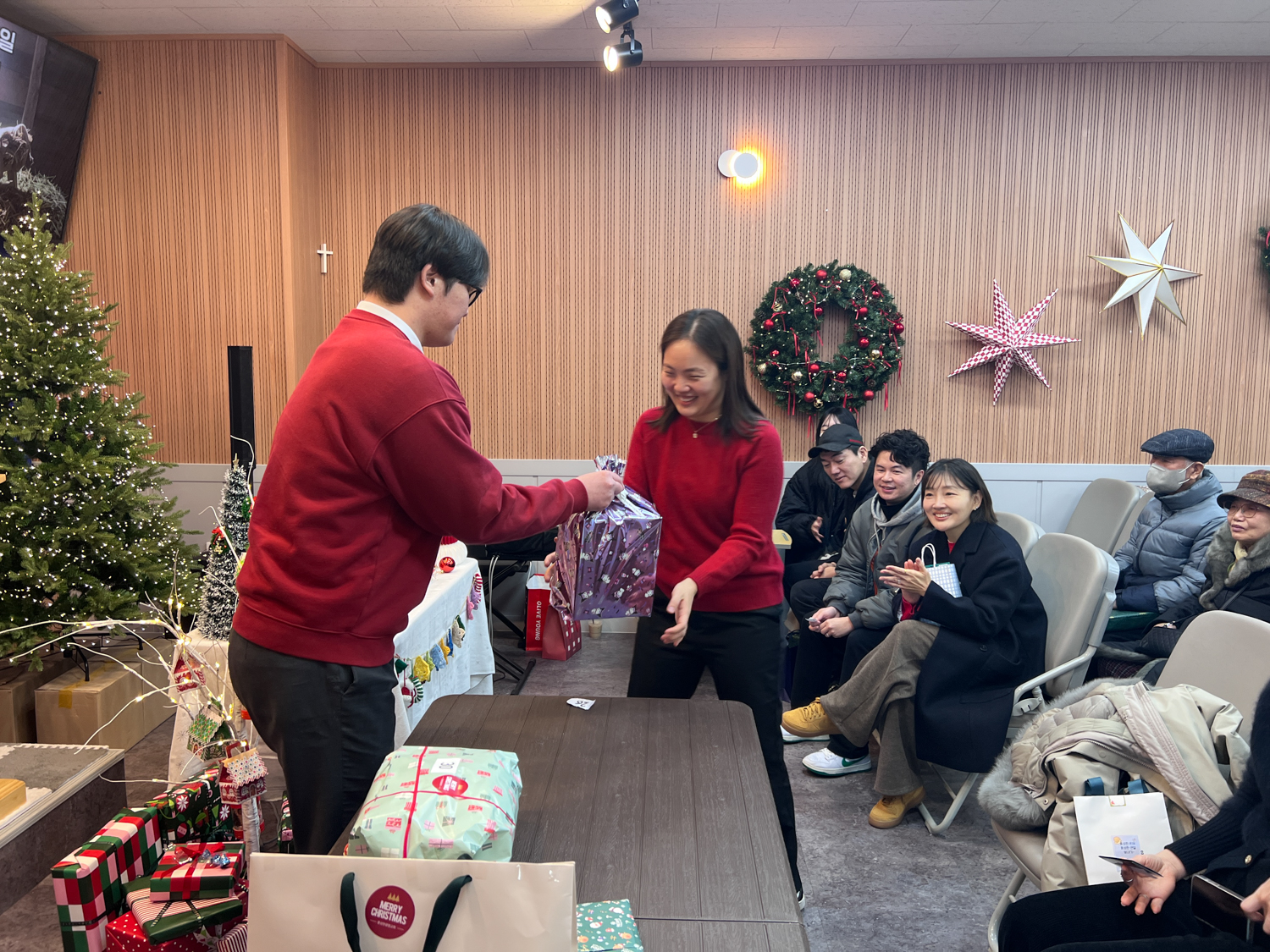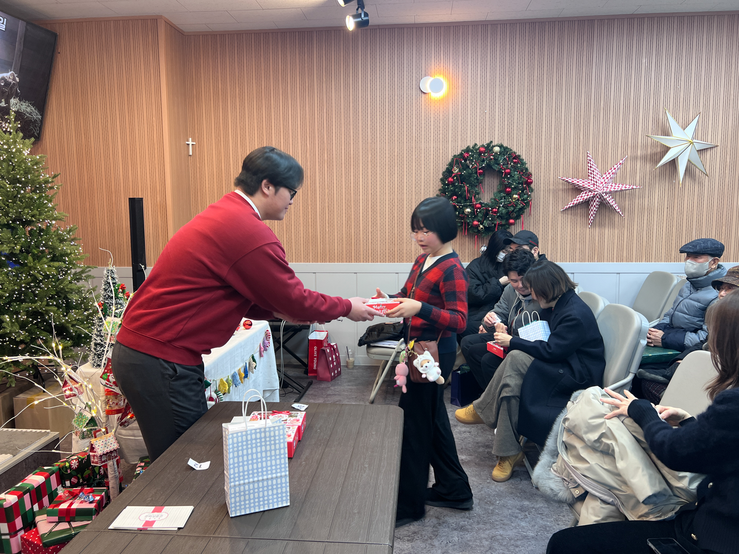 2025년 성탄절입니다. 예수님이 이 땅에 오신 것을 기념하는 날입니다 .오늘은 성탄절을 맞이해서 남,여 성도회가 특송을 준비했습니다. 또 주일학교 김재희군의 멋진 찬양과 랩 그리고 율동도 볼 수 있었습니다. 예배가 모두 끝난 뒤에는 선물도 나누었습니다.