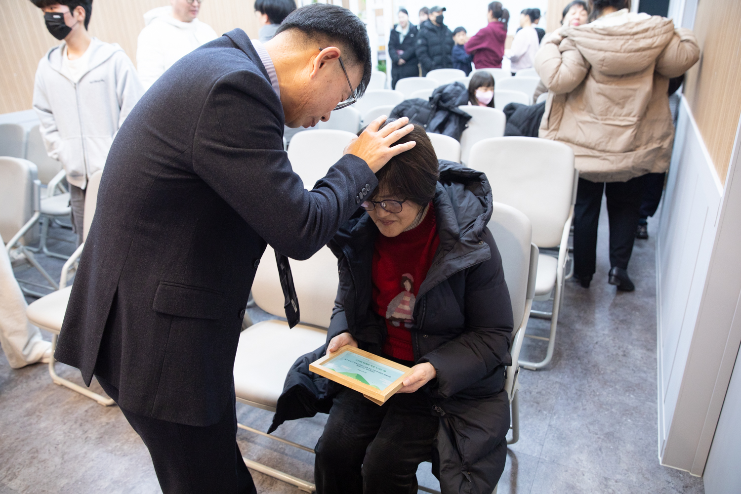 그리고 자신의 말씀 액자를 가지고 담임목사 앞에 왔습니다. 저는 성도들의 기도제목을 듣고 말씀을 읽으며 기도했습니다. 2026년에도 하나님이 함께 해 주시길, 복을 주시고 말씀이 이루어지는 것을 삶에서 경험하도록 말이지요. 2026년에도 하나님이 주시는 풍성한 은혜 누리기를 소망합니다.