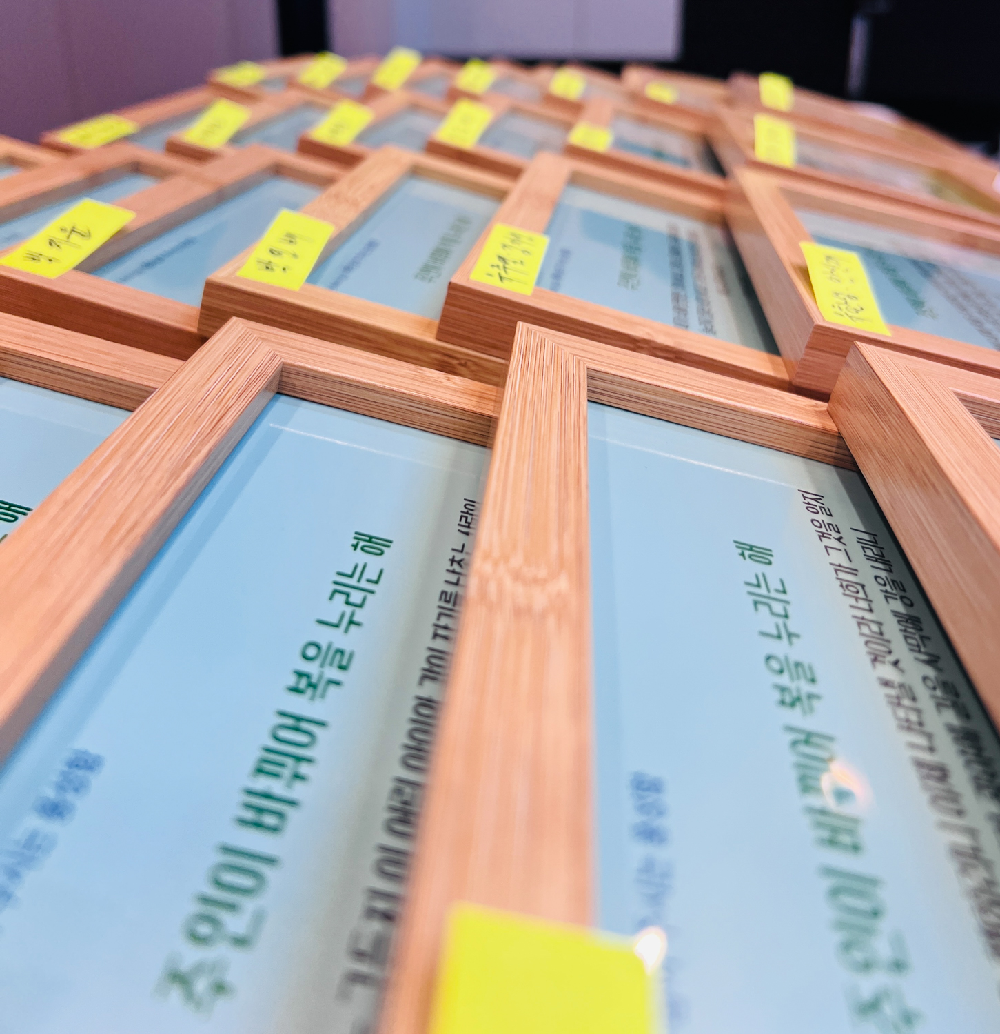 먼저 송구영신 예배 때 사용할 말씀액자를 준비했습니다. 올해도 작년처럼 내가 가장 좋아하는 말씀, 2026년 내 삶에 이루어지기를 바라는 말씀을 성도들의 액자에 담았습니다. 그리고 강대상 배경도 2026년 주제인 ‘주인이 바뀌어 복을 누리는 해’로 바꾸었습니다.