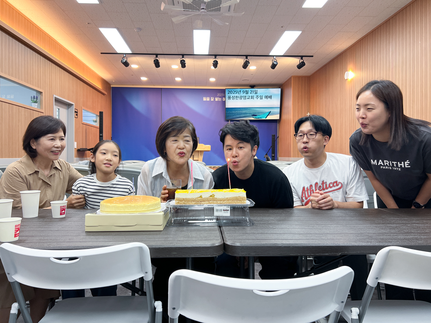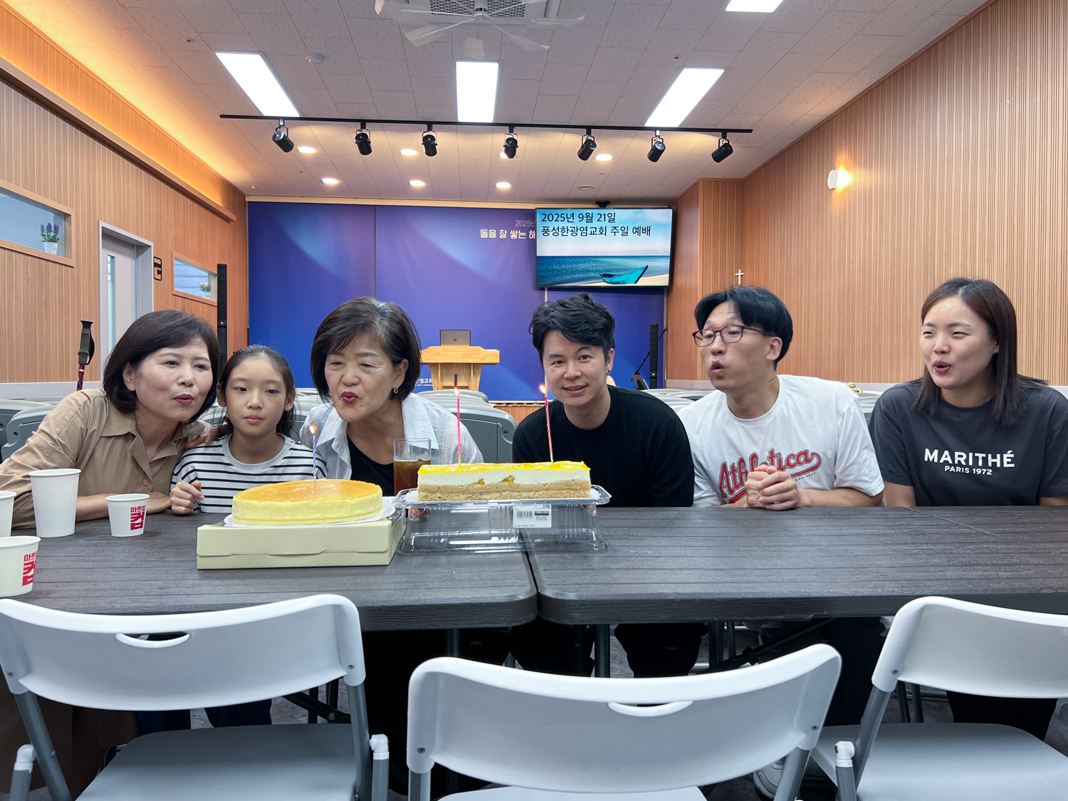 오늘도 복된 주일, 풍성한 주일입니다. 오늘은 7~9월 생일이신 분들 생일 축하가 있었습니다. 모두 하나님의 은혜로 잘 지내는 복된 인생 되기를 소망합니다. 감사합니다.